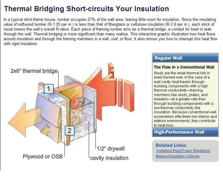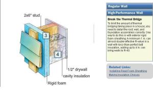 To see an interactive graph of the effect of thermal bridging on a traditional wall and a wall built with this in mind…click http://www.finehomebuilding.com/pages/thermal-bridging/. Fine Homebuilding has both a website and a magazine that you can pick up in your local Home Depot or Lowes. The website does have quite a few articles that are free without the subscription such as this one. It’s a great idea to think about when you’re doing your next home improvement project.