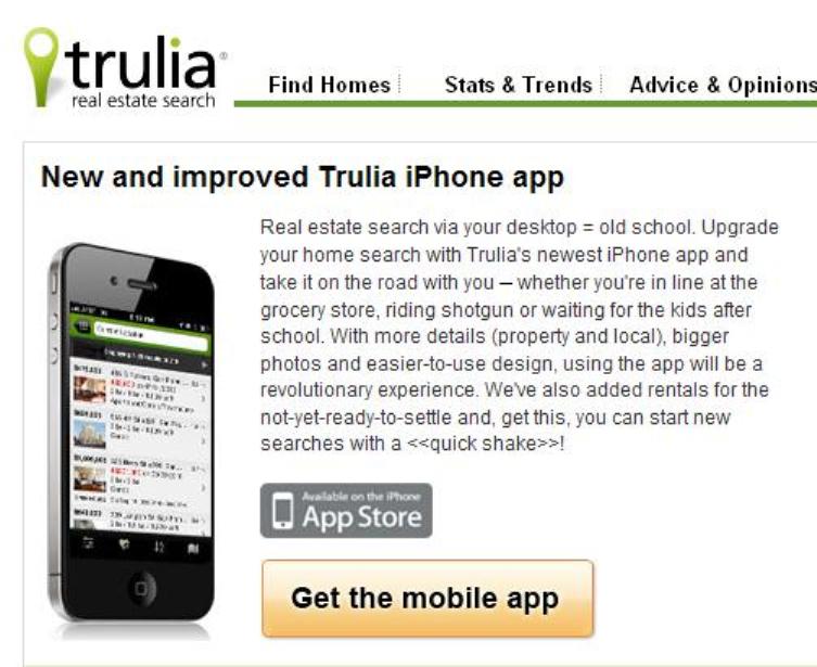 Direct link to download the free Trulia Home Search app: http://itunes.apple.com/app/trulia-real-estate-search/id288487321