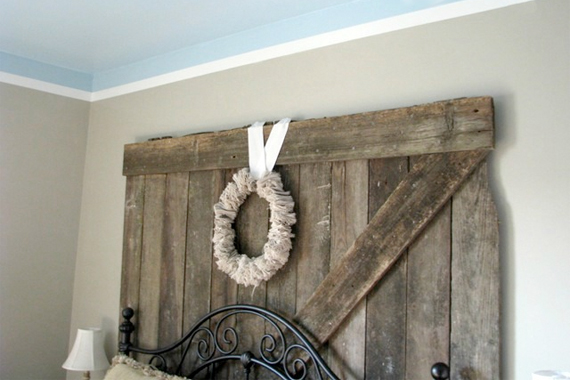 White duct tape covers the line where the blue ceiling paint meets the beige wall color, creating an inexpensive multi-layered crown moulding effect. Bringing ceiling paint color down along the walls helps make tall walls look shorter.