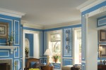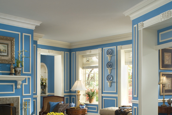 Not all crown mouldings look like they came from ancient Greece; these jazzed-up plaster mouldings are completely contemporary. In rooms with ceilings 8 feet high or less, the upper portion of your crown moulding (along the ceiling) should be longer than the bottom (along the wall). Custom plaster mouldings and trims cost $25-$50 per running foot; installation requires experience.